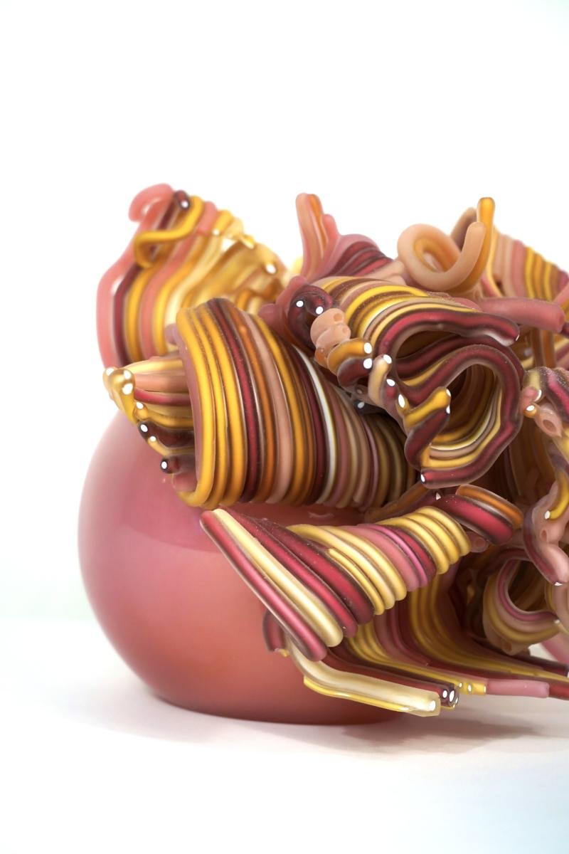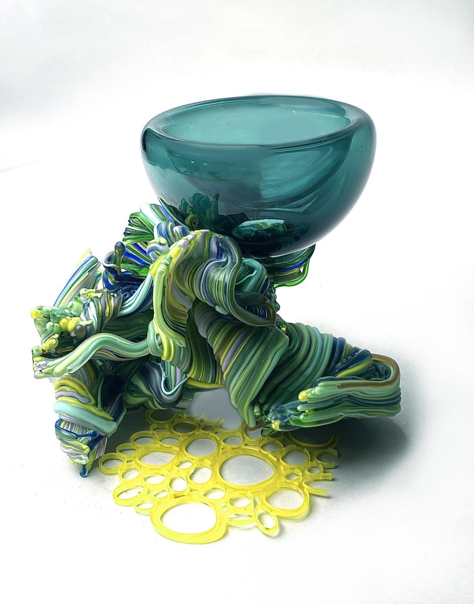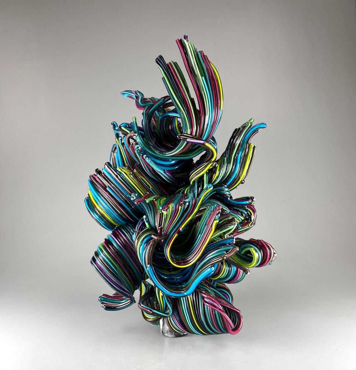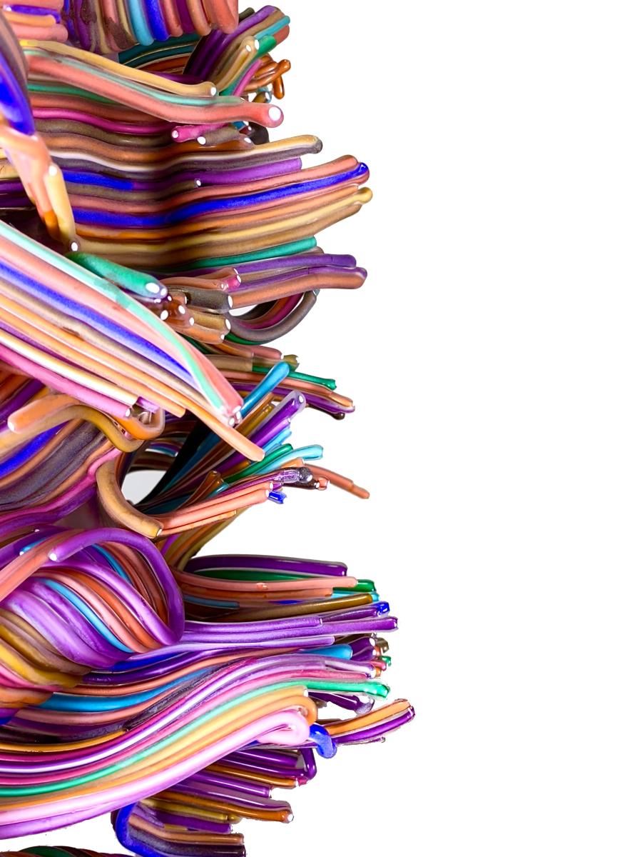 Working with molten glass is a delicate dance between control and spontaneity. Each sculpture begins as a fiery, malleable material, shaped and manipulated through a dance of breath, heat, and technique. Color plays an integral role in my work, serving as a conduit for emotion and expression. The vibrant hues that flow through the glass reflect a kaleidoscope of emotions—joy, wonder, and a sense of boundless possibility. Through the layering and blending of colors, I seek to evoke an emotional response in the viewer, inviting them to experience a visual symphony of hues and tones within each sculpture that I create.