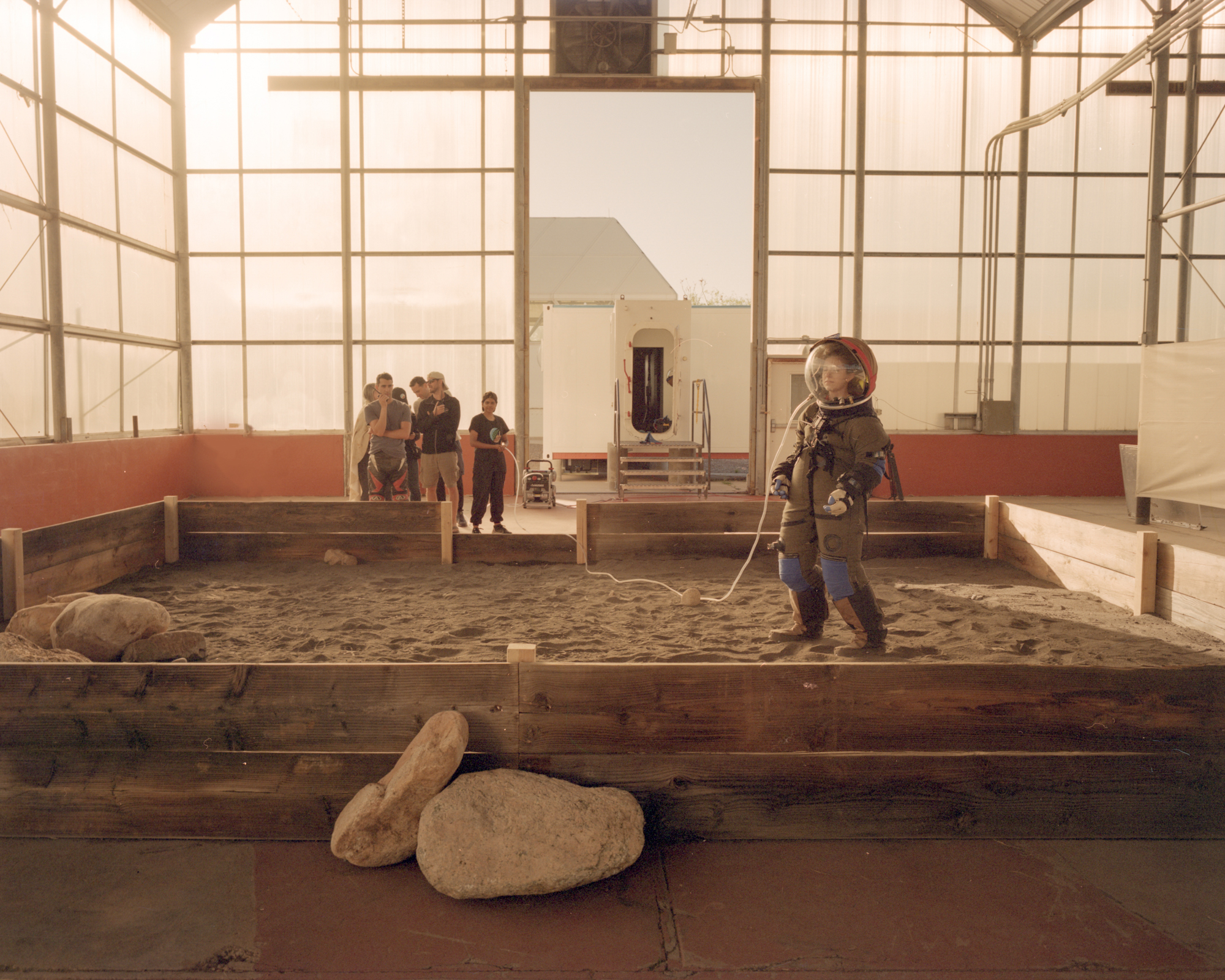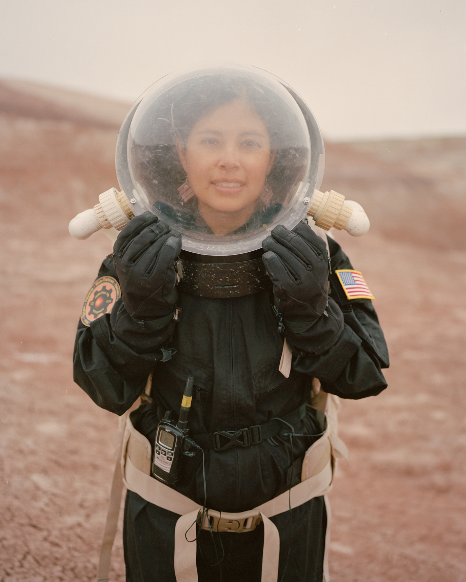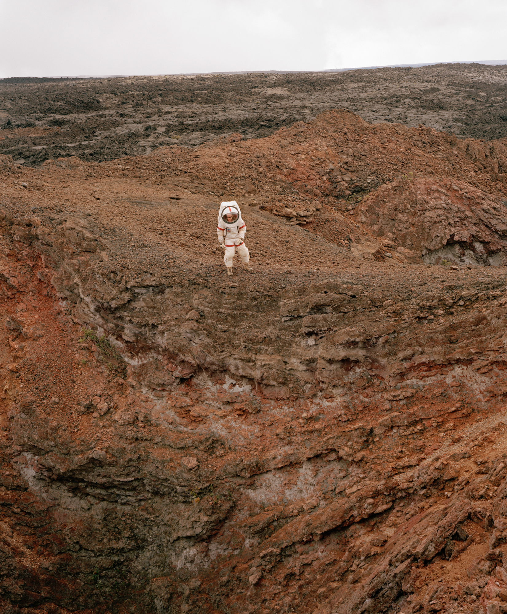 “Mars on Earth” is a photographic project that documents the diverse and ever-changing research happening in “space” without stepping a foot off the planet. Around the globe, space simulations and human factors studies envision a new science fiction by researching humans in space-specific confinements and analogous landscapes. With pressurized space suits, freeze-dried food, and Mission Control waiting back at “home,” the photographs attempt to visualize what space travel might be like for the first cosmic explorers. The simulated experience blurs the line between reality and fiction, and this “between space” persuades participants to suspend their disbelief. I am interested in the juxtaposition between the real and fictitious, both among the psychological persuasion and the visuals that cue these kinds of connections. This work references science fiction, but also environmentalism and human futurisms — as we learn more about how we would live in space we also are learning how we can live better here on Earth. The project does not take place solely in one location, but in microcosms and science communities all over the world. I have participated in four simulated missions myself, yielding seven weeks in simulated space travel, and photographed countless others.