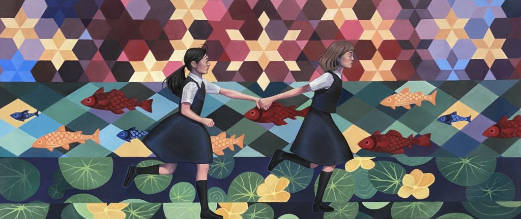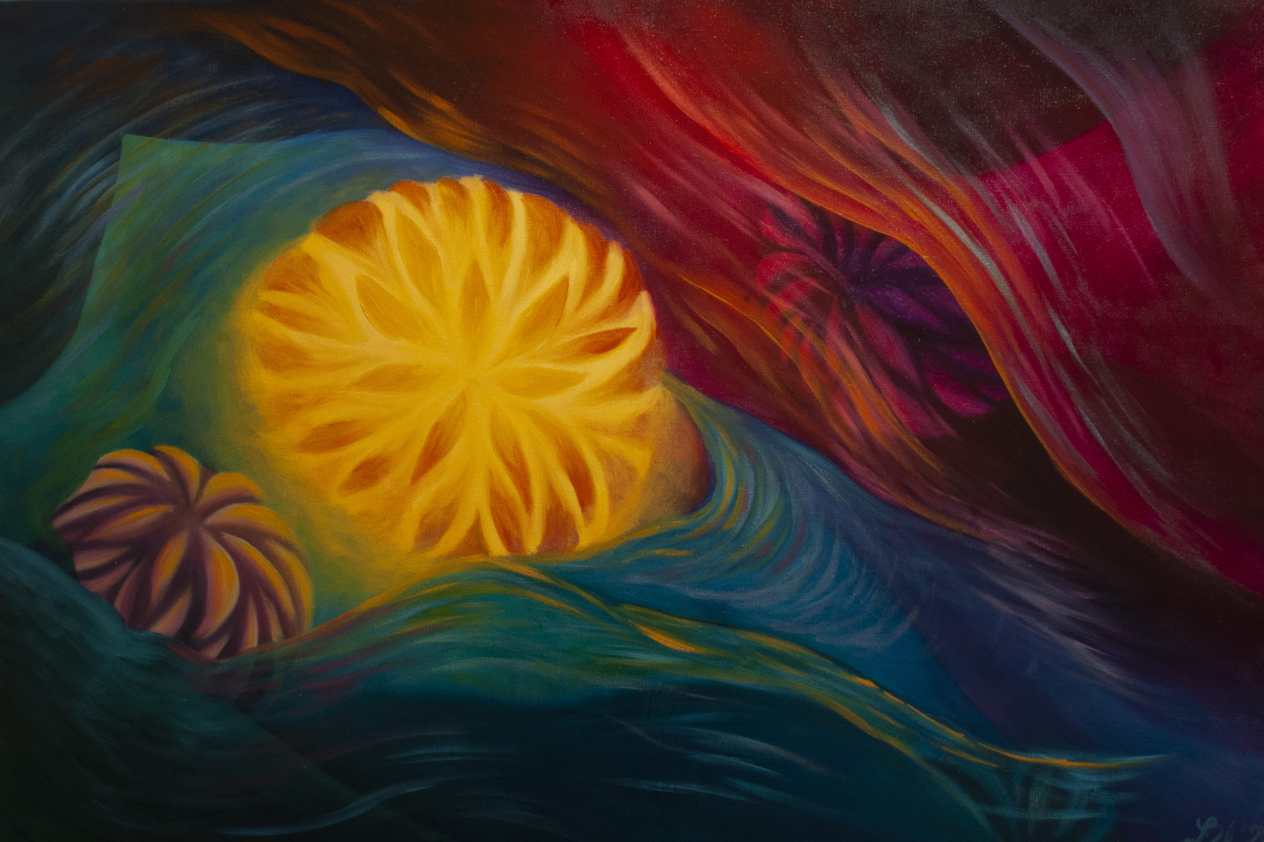 Being a current illustration student, I am able to further enhance the narratives of my work. I chose this path because storytelling is the force that drives all of my projects. I portray a variety of subjects and scenes, each with their own unique story and use many different materials, most often acrylic or oil paint. I enjoy combining whimsical and surrealist elements with realism. I use iconography and symbolism to add visual interest and give each piece its meaning. My personal experiences are woven into all my paintings. I use my negative experiences to create something beautiful and enhance the present beauty of my positive experiences. My worries, doubts, joys and hopes all combine into a visual anomaly of canvas and paint. I make my work personal to me yet open for others to interpret as their own. I hope to share the joy of storytelling with everyone that views my art.