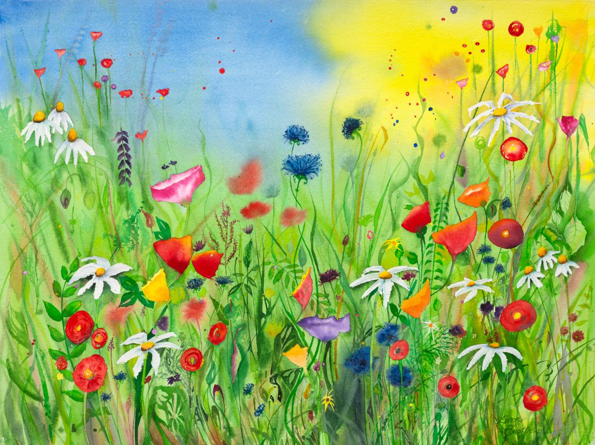 Music plays a large part in my creative process and most of my paintings now are painted to the soundtrack of one artist – e.g I listened to Billie Holiday while painting “Autumn” and Paul Simon while painting “Paul Simon and my Wildflower Garden”.