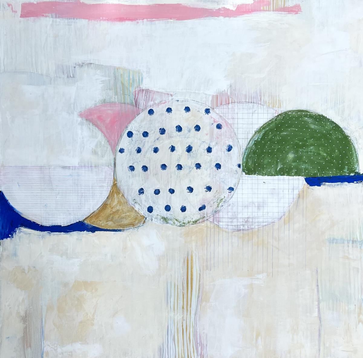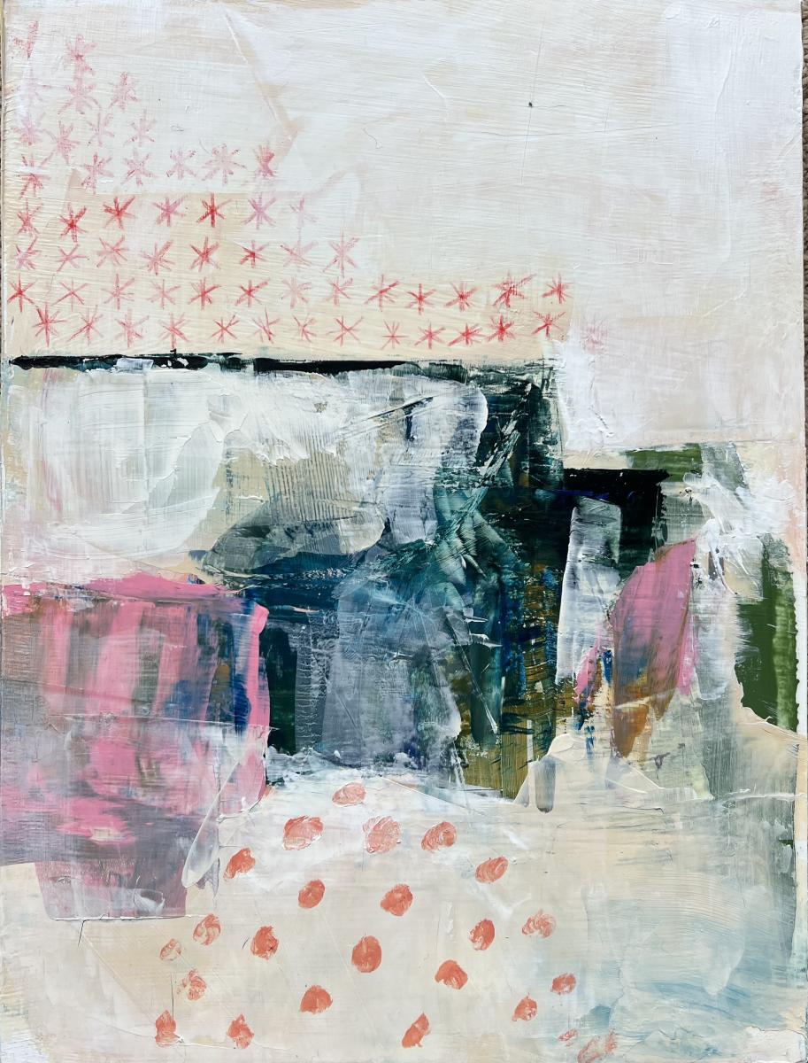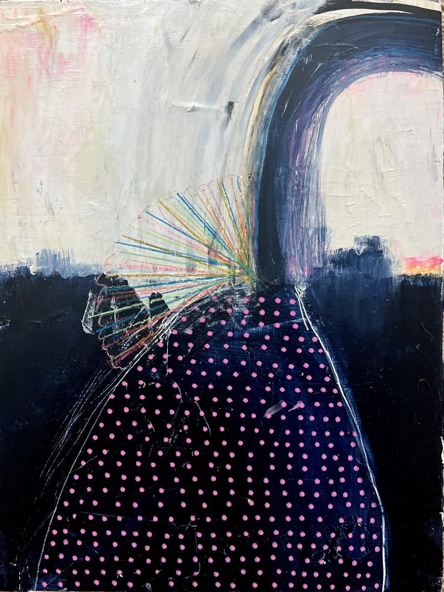 My work is a reflection of our state of being. It responds to our need to be seen. Through abstract compositions, I create visual representations of our universal human emotions. Using brushstrokes, drawn lines, layers of paint, and recognizable forms to represent us. I show how outside forces surround our inner selves, and through paint convey these emotions. I use encaustic, oil, and acrylic paints to build layers. I incorporate marks with oil pastels, spray paint and marker that can relay an immediacy and intensity. My paintings give you room and a place to expresses what you cannot in words. In my own experience I can find that it is a struggle to take up space and to be valued when I show up as myself. I create a connection to this collective experience that is at once unique to you and universal to us.