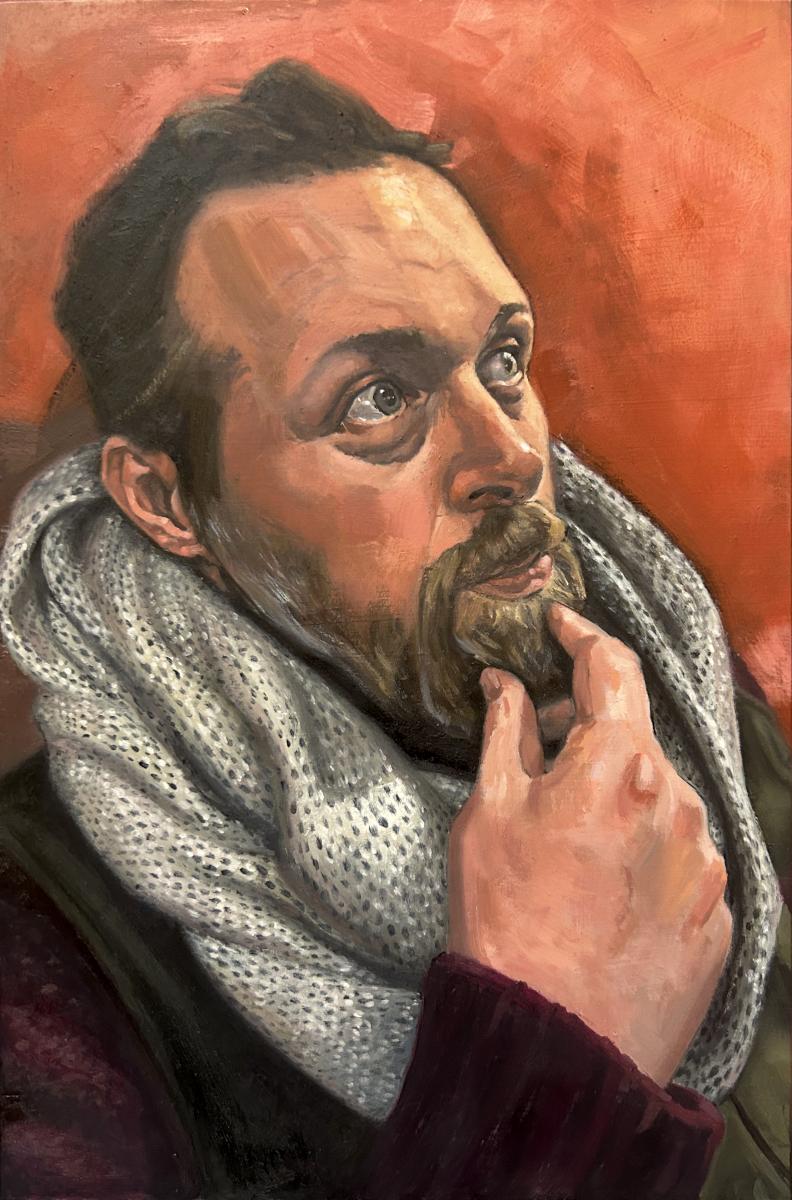 Roath’s artwork focuses on the dreamlike qualities of existence, and the innate sense of awe that is inherent in whatever new world that day decides to create. His pieces’ are constructed using compositional elements from the Renaissance, while his color choices and energetic atmosphere are influenced by the Impressionists. Inspired by the Symbolists, his concepts use himself, friends, hybrid creatures, interstellar monoliths, and objects from his life, creating a parallel narrative to his own blurring the lines between fantasy and reality. Maxwell explores his own unique experiences to share them with the viewer, investigating the overlap of the imagined and the real, manifesting surreal emotions in everyday moments. Through paintings, drawings, lithographs, etchings and woodcuts, he creates work combining humor with nostalgic moments. His art evokes longing, self reflection, and alludes to a world grappling with the impermanence of human existence.